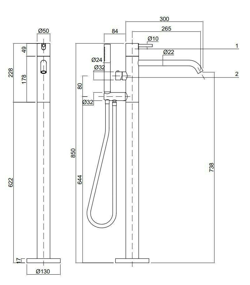 Full Solid stainless steel made bath tub floor mounted mixer with hand held shower head